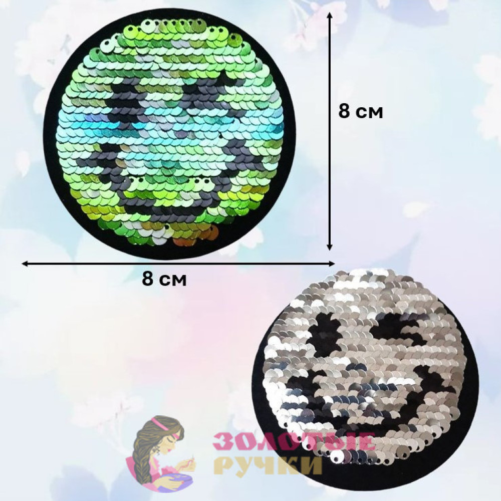 Термоаппликация "Смайлик" с пайетками меняющая цвет. Цвет: микс. Диаметр: 8 см