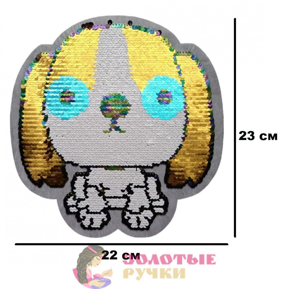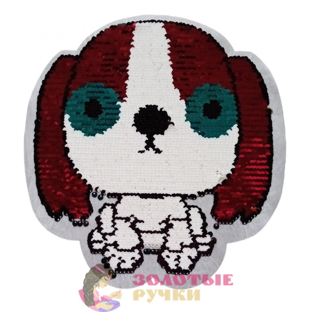 Термоаппликация "Собачка" с пайетками меняющая цвет. Размер: 23*22 см