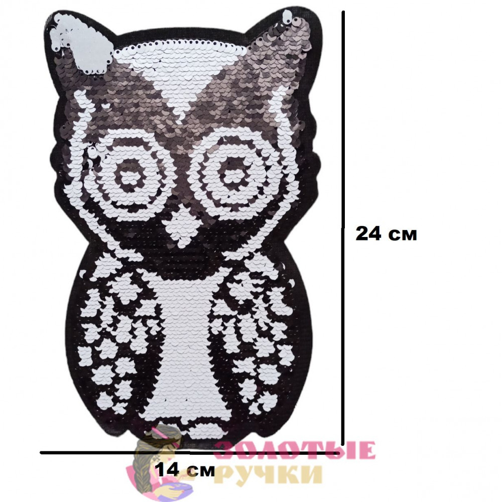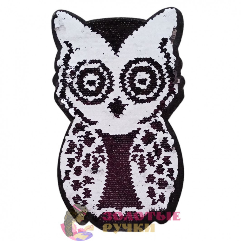 Термоаппликация "Сова" с пайетками меняющая цвет. Размер: 24*14 см