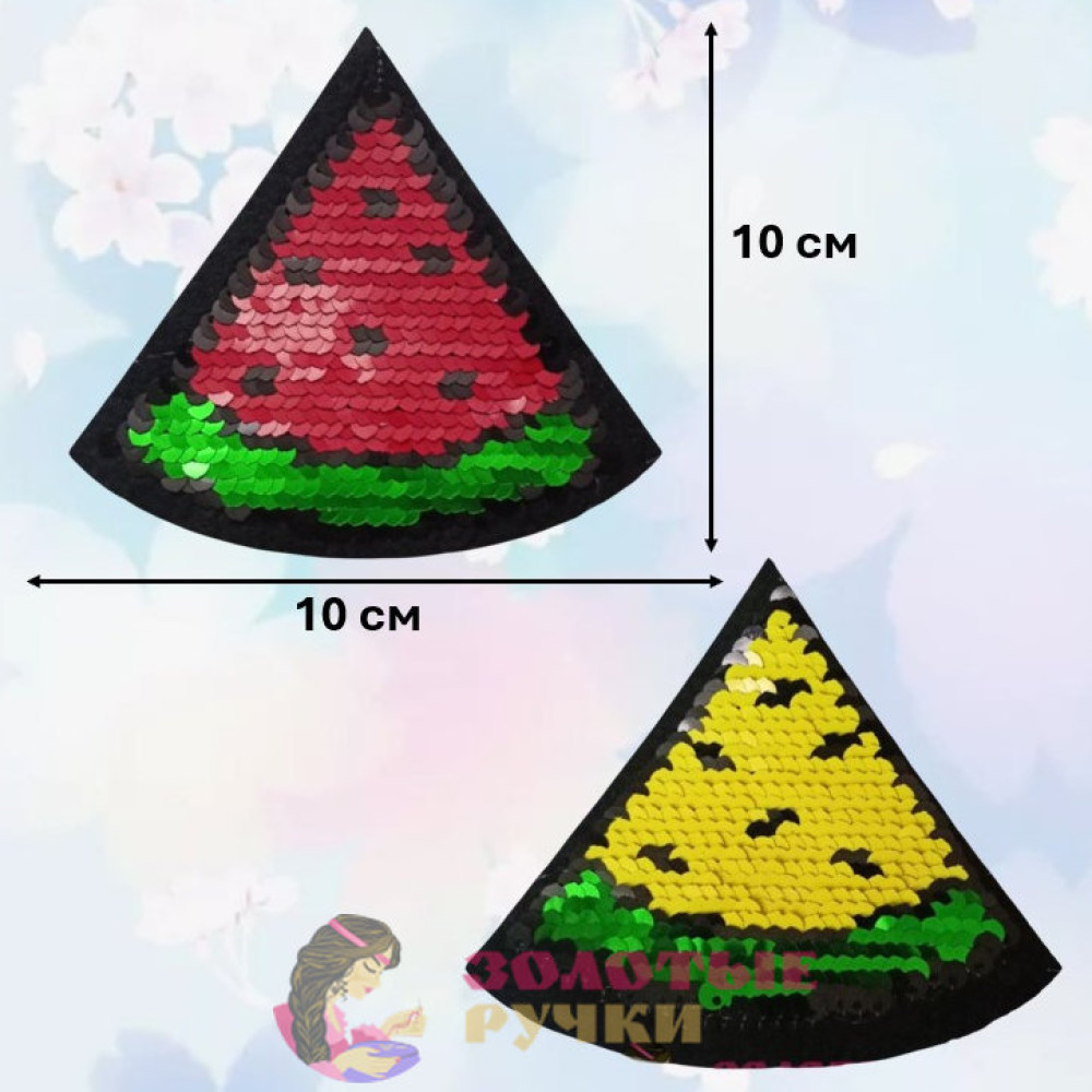 Термоаппликация "Арбуз" с пайетками меняющая цвет. Цвет: черный. Размер: 10*10 см