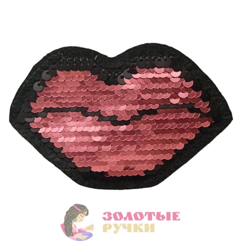 Термоаппликация "Губы" с пайетками меняющая цвет. Цвет: розовый. Размер: 7*10 см
