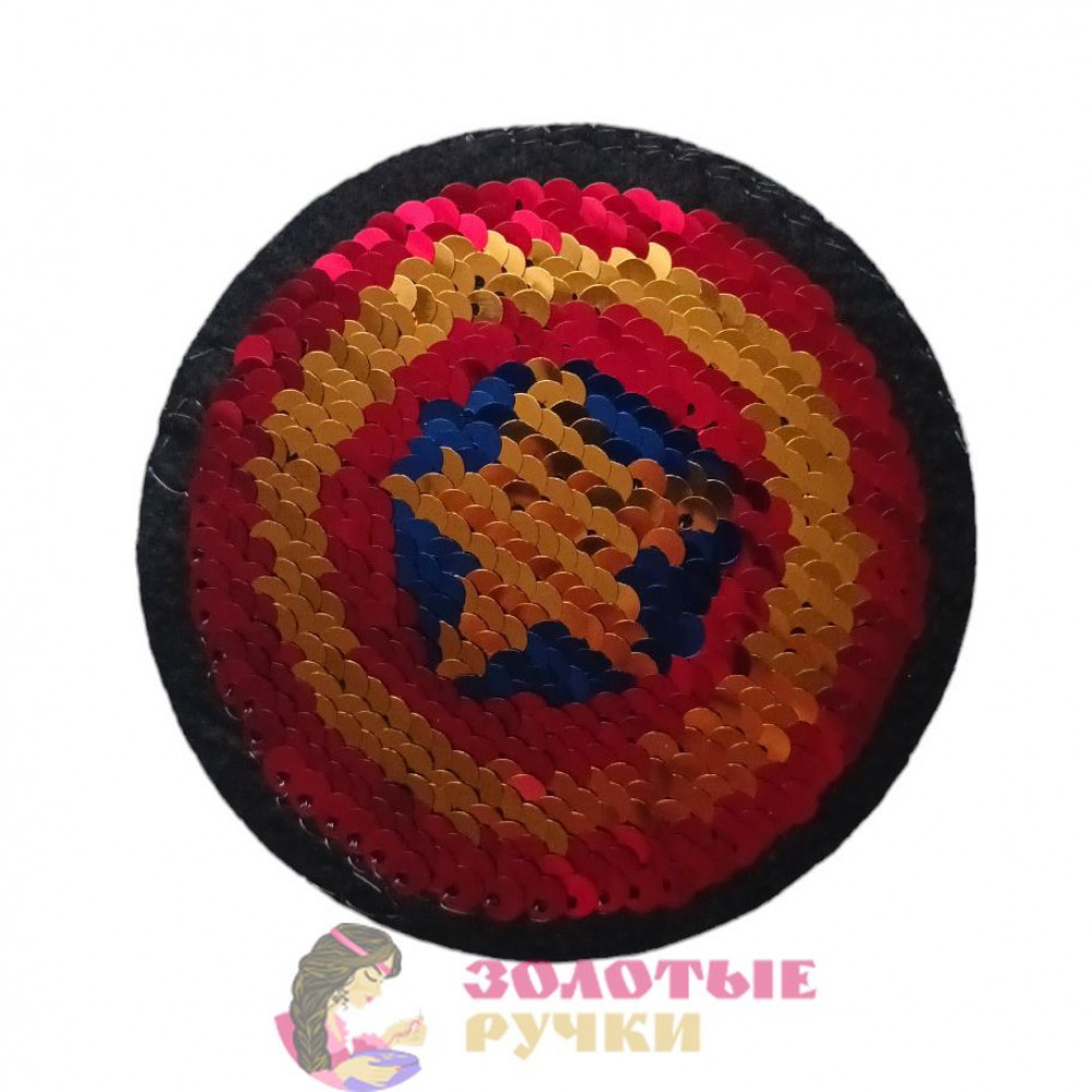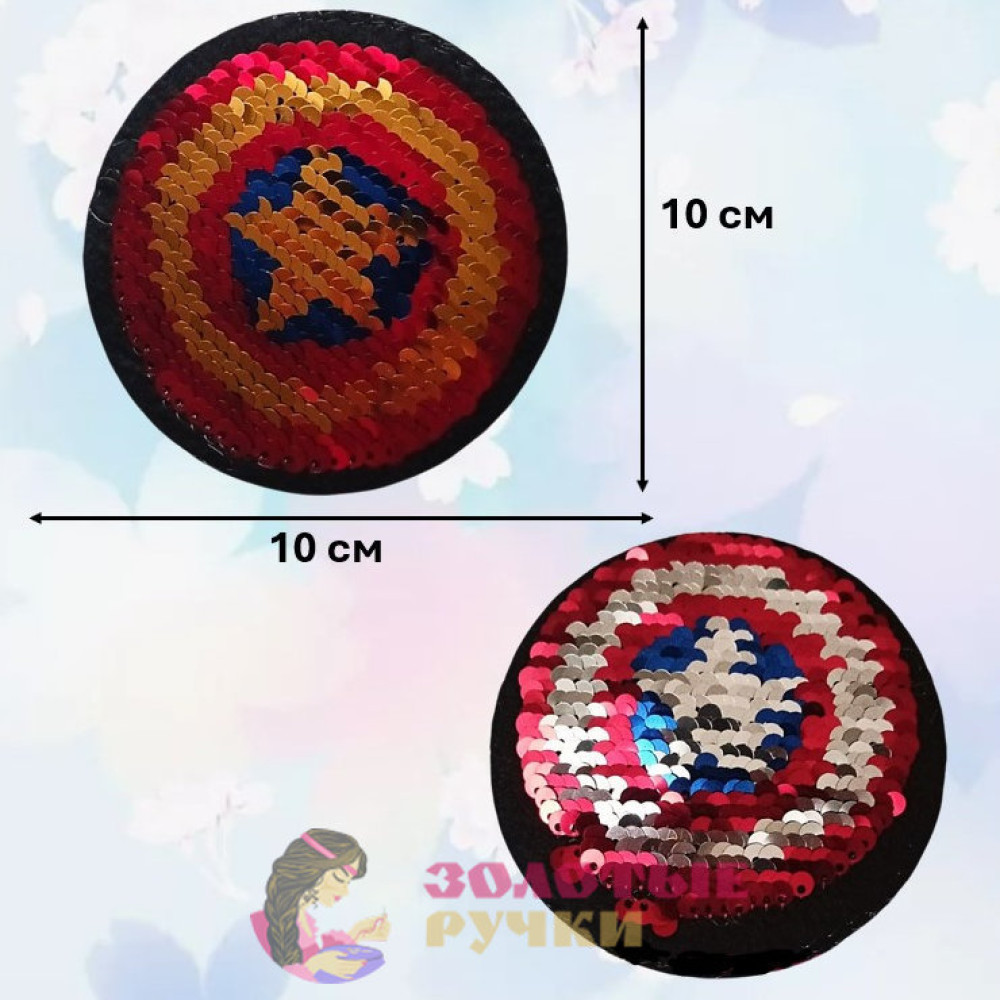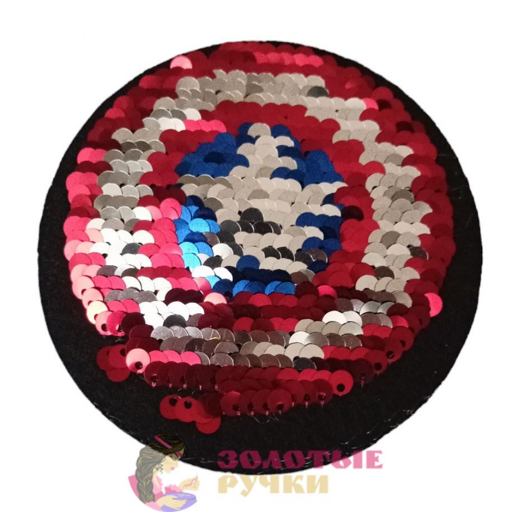 Термоаппликация "Капитан Америка" с пайетками меняющая цвет. Диаметр: 10 см