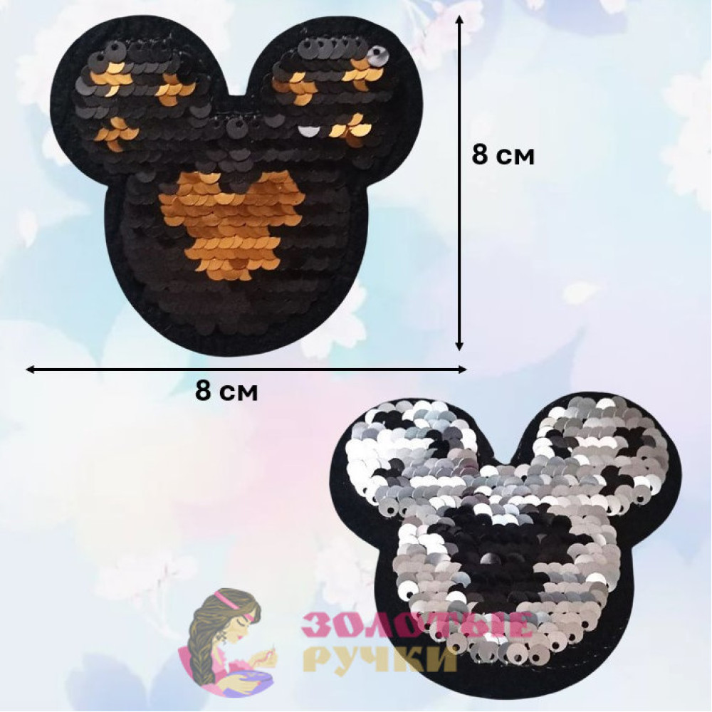 Термоаппликация "Микки Маус" с пайетками меняющая цвет. Цвет: черный. Размер: 8*8 см