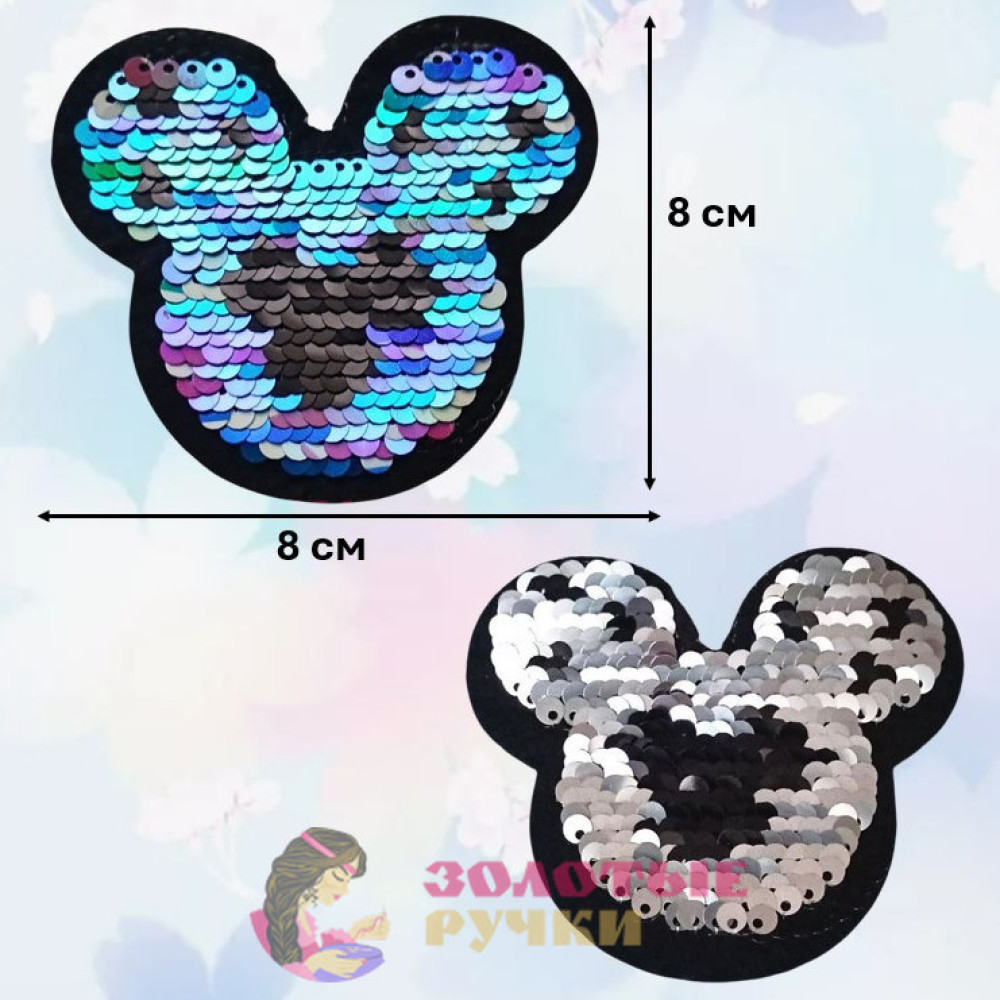 Термоаппликация "Микки Маус" с пайетками меняющая цвет. Цвет: микс. Размер: 8*8 см