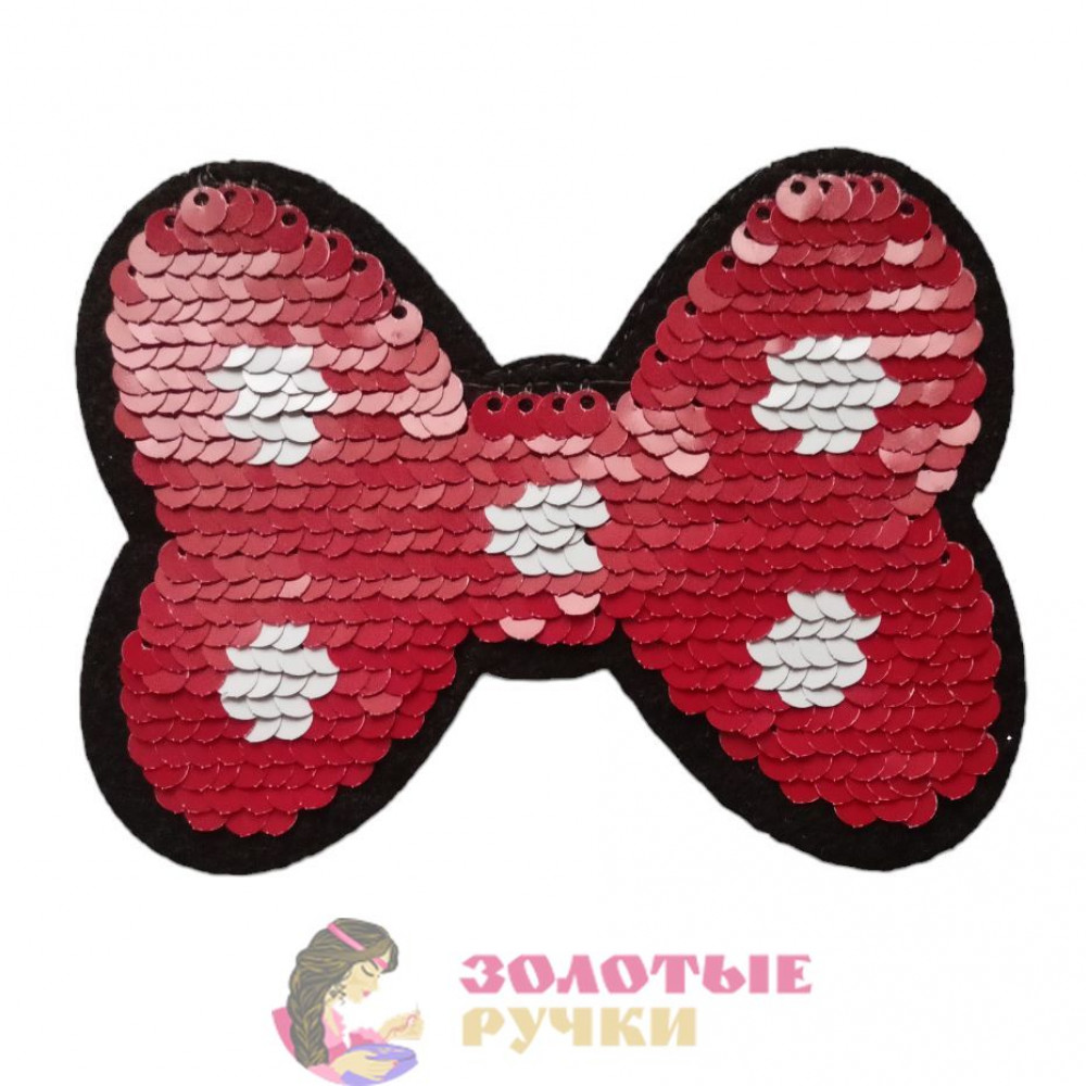 Термоаппликация "Сердце" с пайетками меняющая цвет. Цвет: красный. Размер: 7,5*10 см