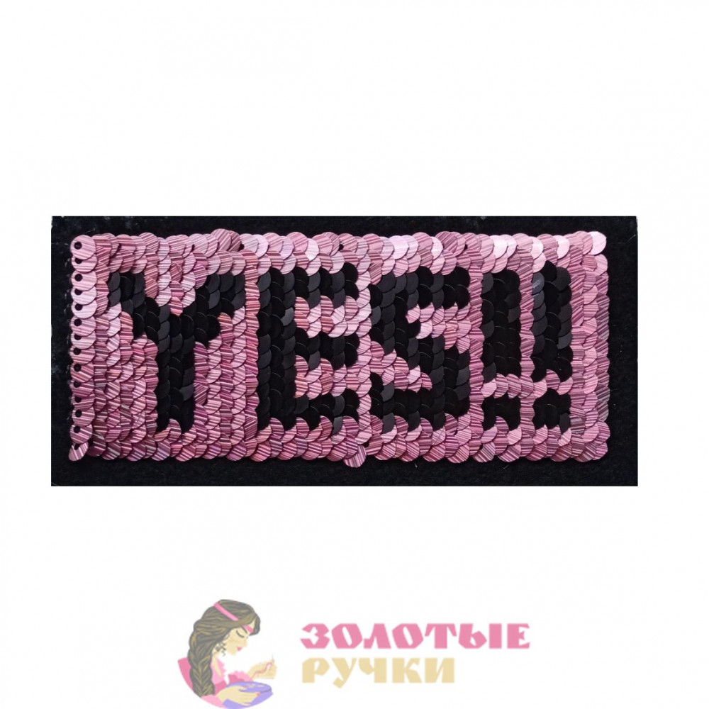 Термоаппликация "YES" с пайетками меняющая цвет. Цвет: розовый. Размер: 5*11 см