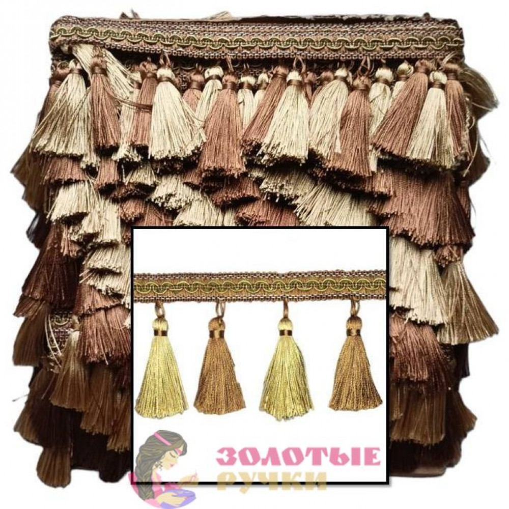 Тесьма декоративная с кисточками. Ширина: 8,5 см. Количество в упаковке: 11,88 м. Цвет: коричневый комбинированный.