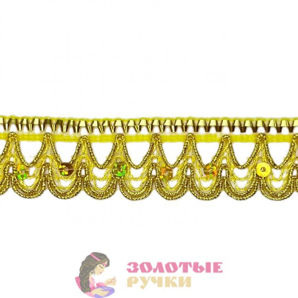Тесьма с пайетками декоративная для рукоделия, шитья. Ширина: 2,5 см. Количество в упаковке: 13,7 м. Цвет: золото.