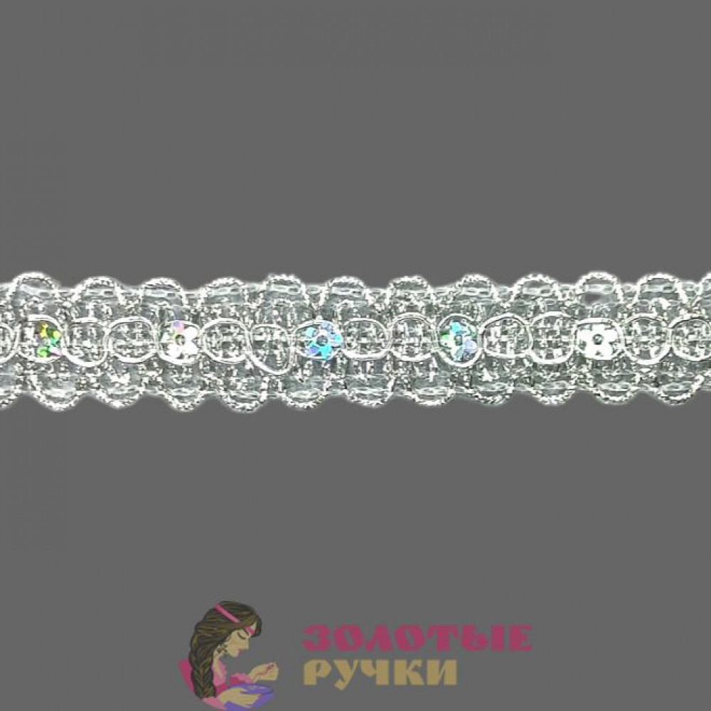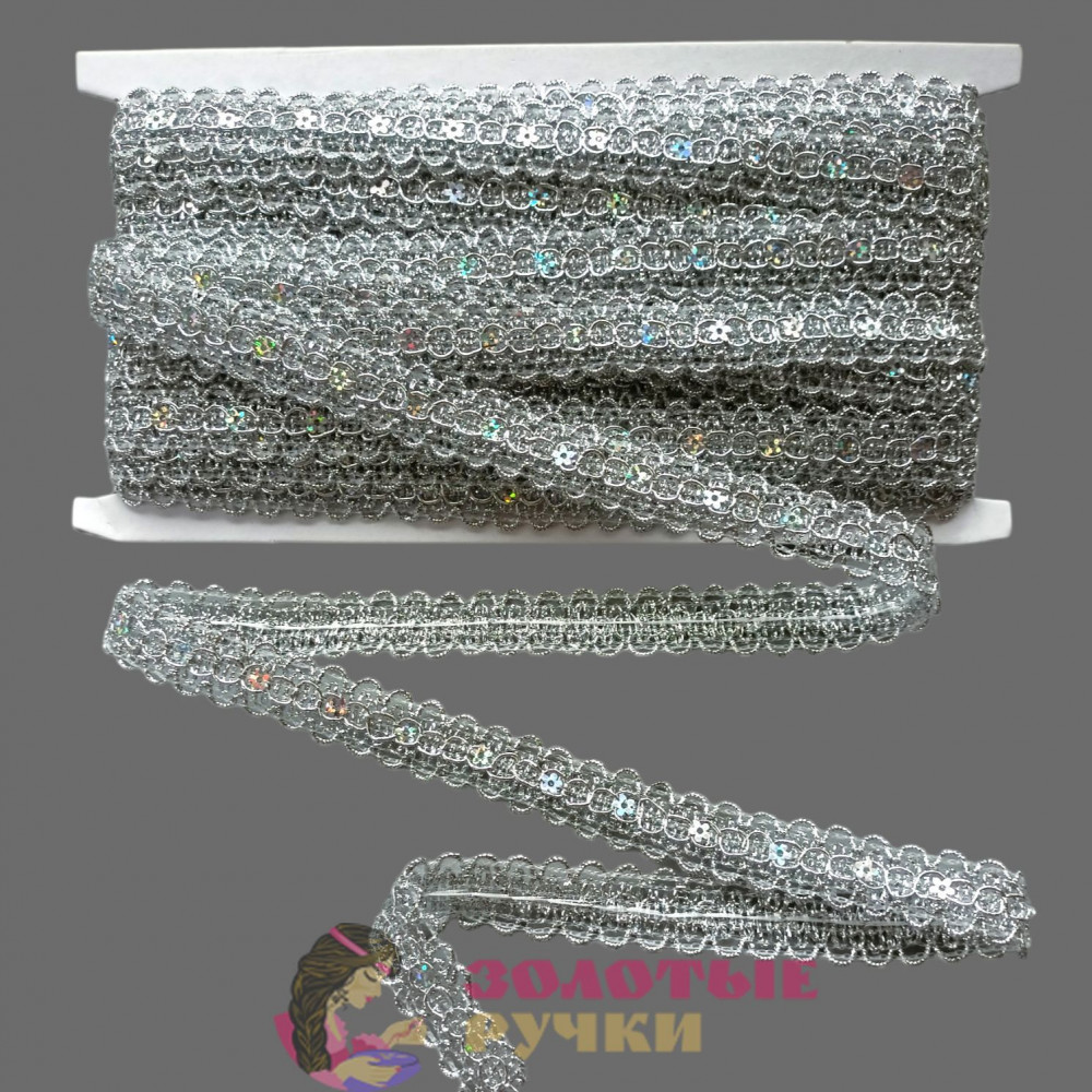 Тесьма с пайетками декоративная для рукоделия, шитья. Ширина: 2 см. Количество в упаковке: 13,7 м. Цвет: серебро.