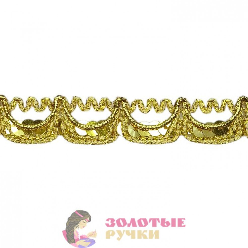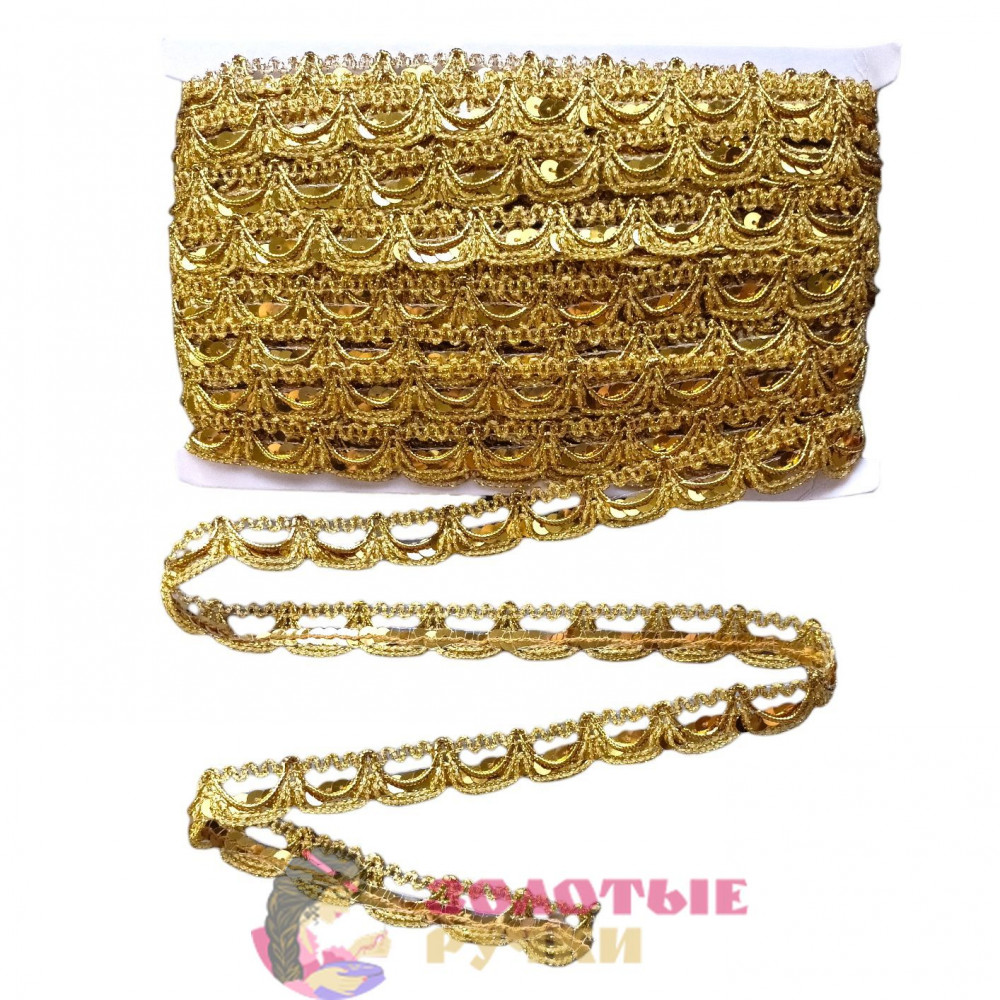 Тесьма с пайетками декоративная для рукоделия, шитья. Ширина: 2 см. Количество в упаковке: 13,7 м. Цвет: золото.