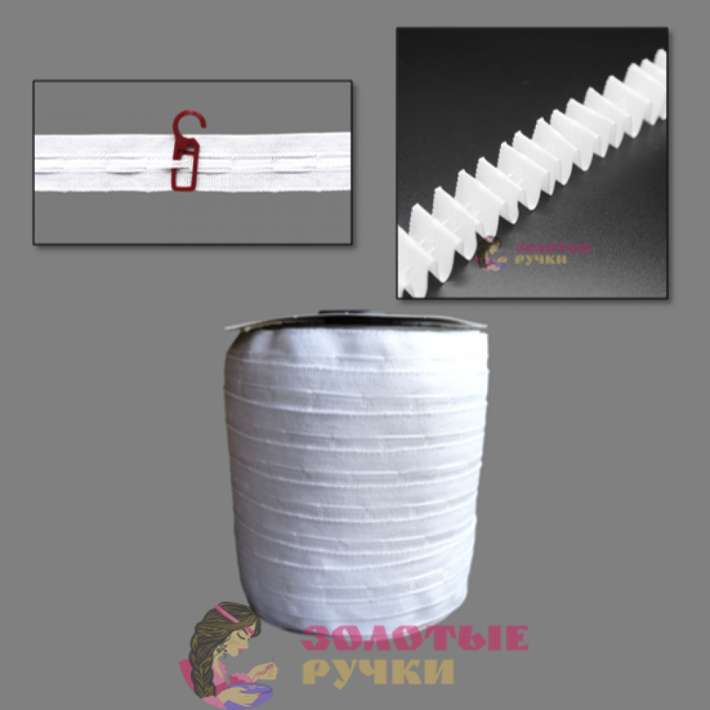 Тесьма для штор. Цвет: белый. Ширина: 25 мм. Количество в упаковке: 100 м.