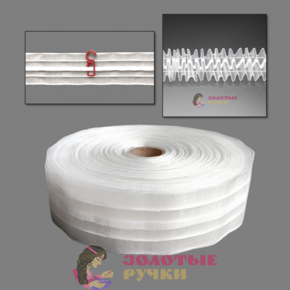 Тесьма для штор. Цвет: прозрачный. Ширина: 40 мм. Количество в упаковке: 50 м.