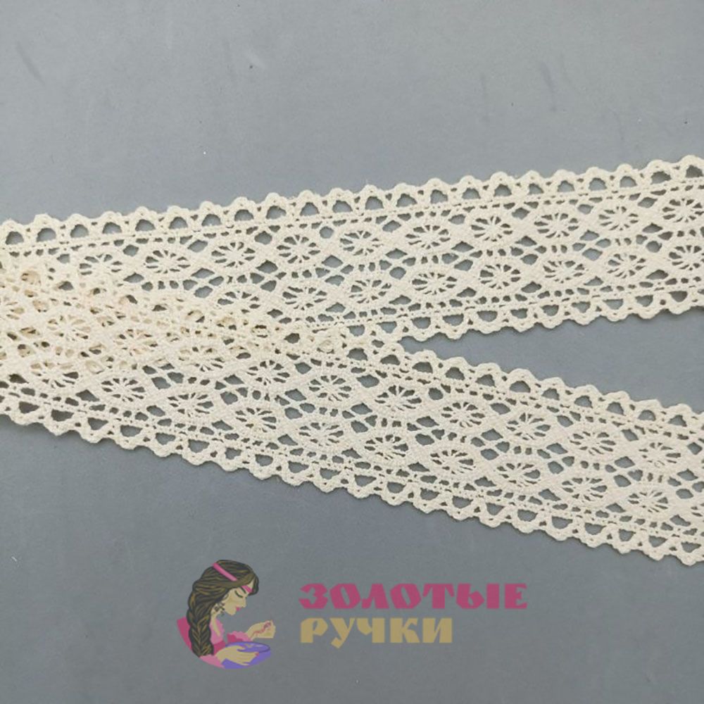 Тесьма вязаная (хлопок) ширина 4,5 см количество в упаковке 13,5 м, цвет молочный