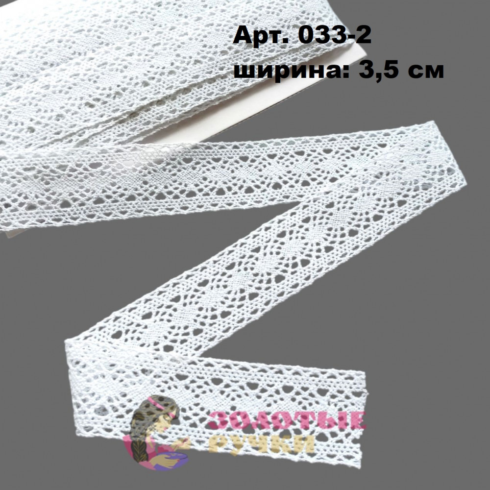 Тесьма вязаная (хлопок) Арт. 033-2 ширина 3,5 см количество в упаковке 13,5 м, цвет белый