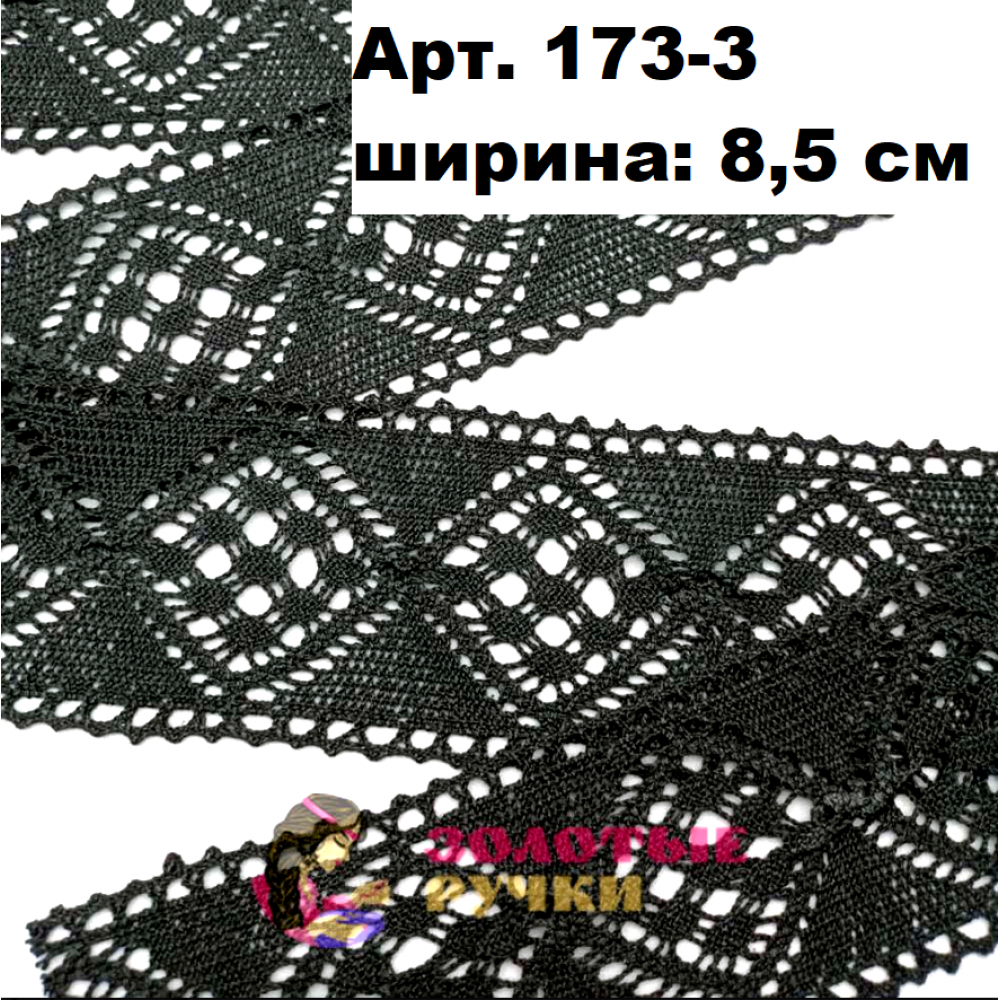 Тесьма вязаная (хлопок) Арт. 173-3 ширина 8,5 см количество в упаковке 9,144 м, цвет черный