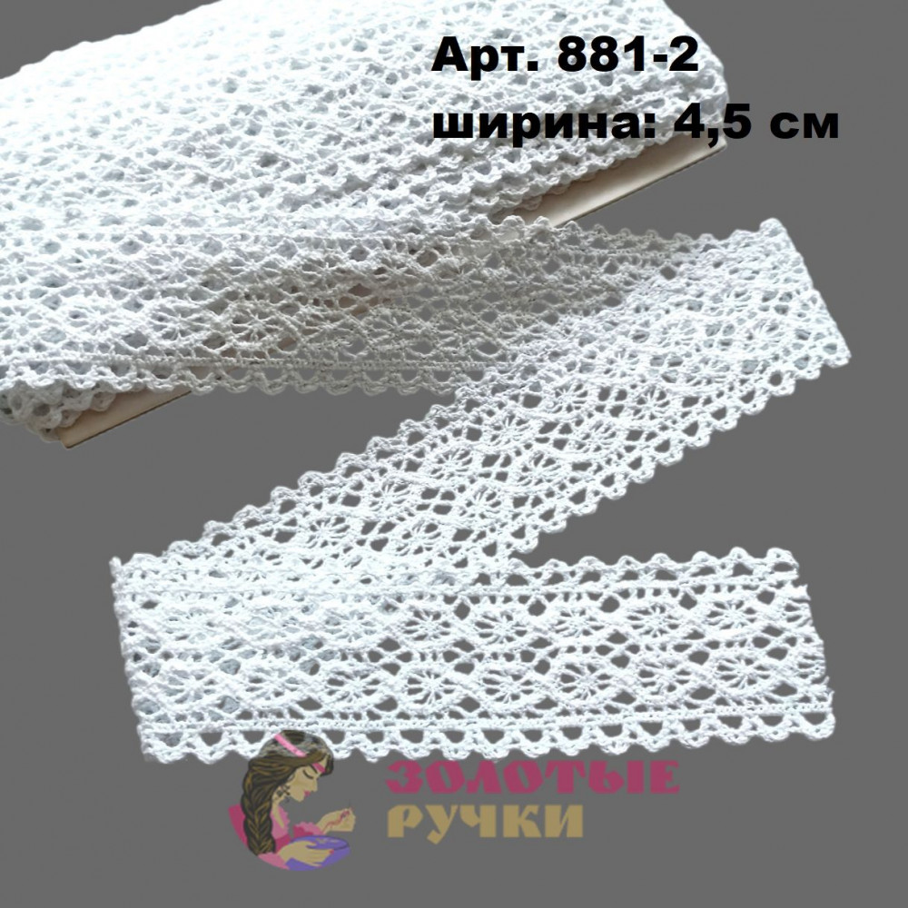 Тесьма вязаная (хлопок) Арт. 881-2 ширина 4,5 см количество в упаковке 13,5 м, цвет белый
