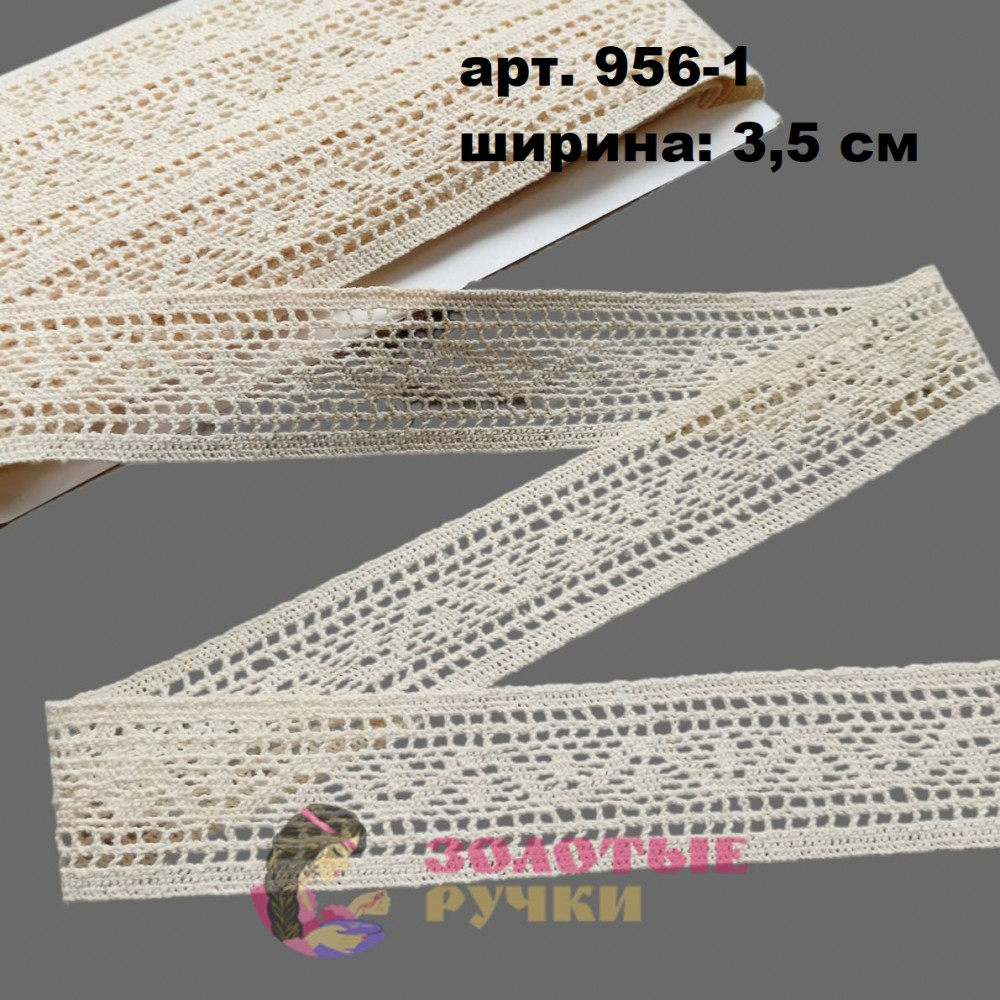 Тесьма вязаная (хлопок) Арт. 956-1 ширина 3,5 см количество в упаковке 13,5 м, цвет молочный