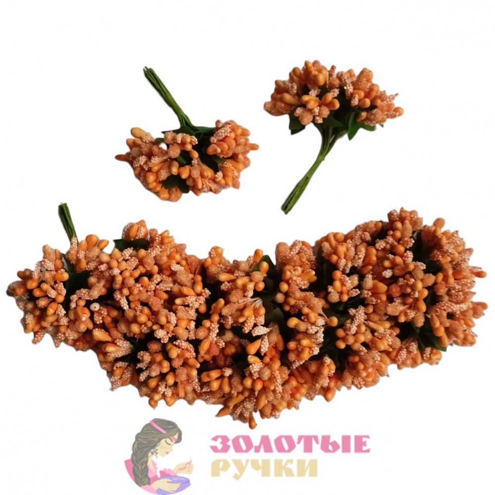 Тычинки декоративные на проволоке. Длина: 9 см. Цвет: оранжевый. Количество в упаковке: 144 шт.