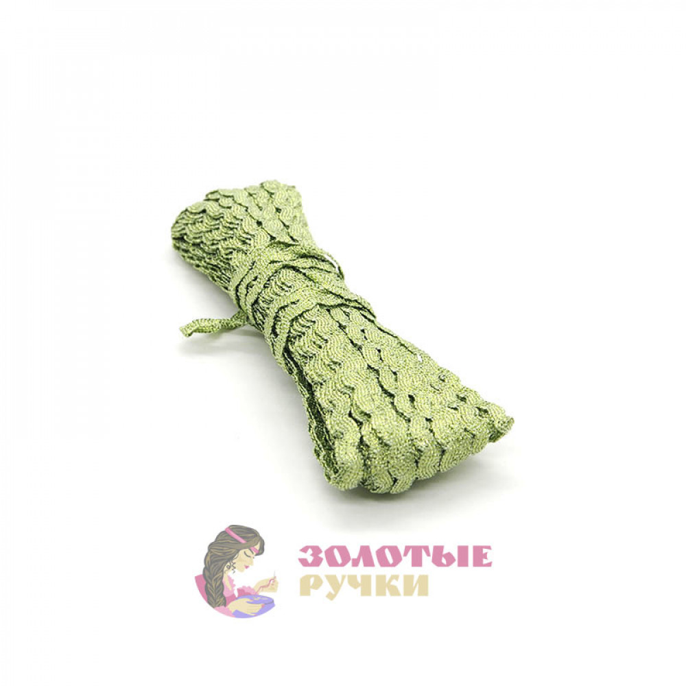 Вьюнчик с люрексом зеленый, в упаковке 20 метров - один из самых любимых видов тесьмы большинства рукодельниц, увлекающихся вязанием и шитьем. Прекрасно подходит для отделки белья и других предметов одежды. В отличие, например, от кружев, данный вид тесьмы не деформируется даже при стирке на больших оборотах и при высоких температурах. Используется для профессиональной отделки тканей, а также для любительского творчества «на дому».