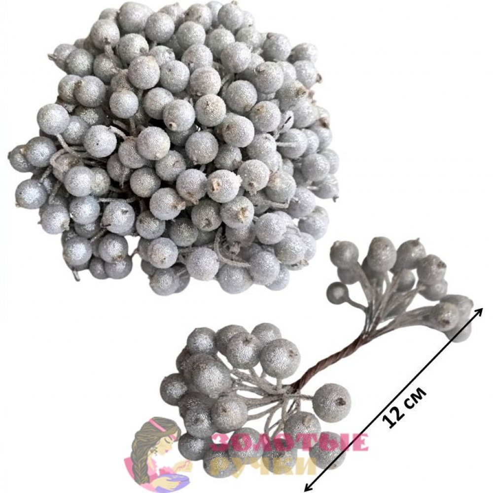 Ягоды в сахаре декоративные на проволоке. Количество в упаковке: 400 шт. Цвет: серебро