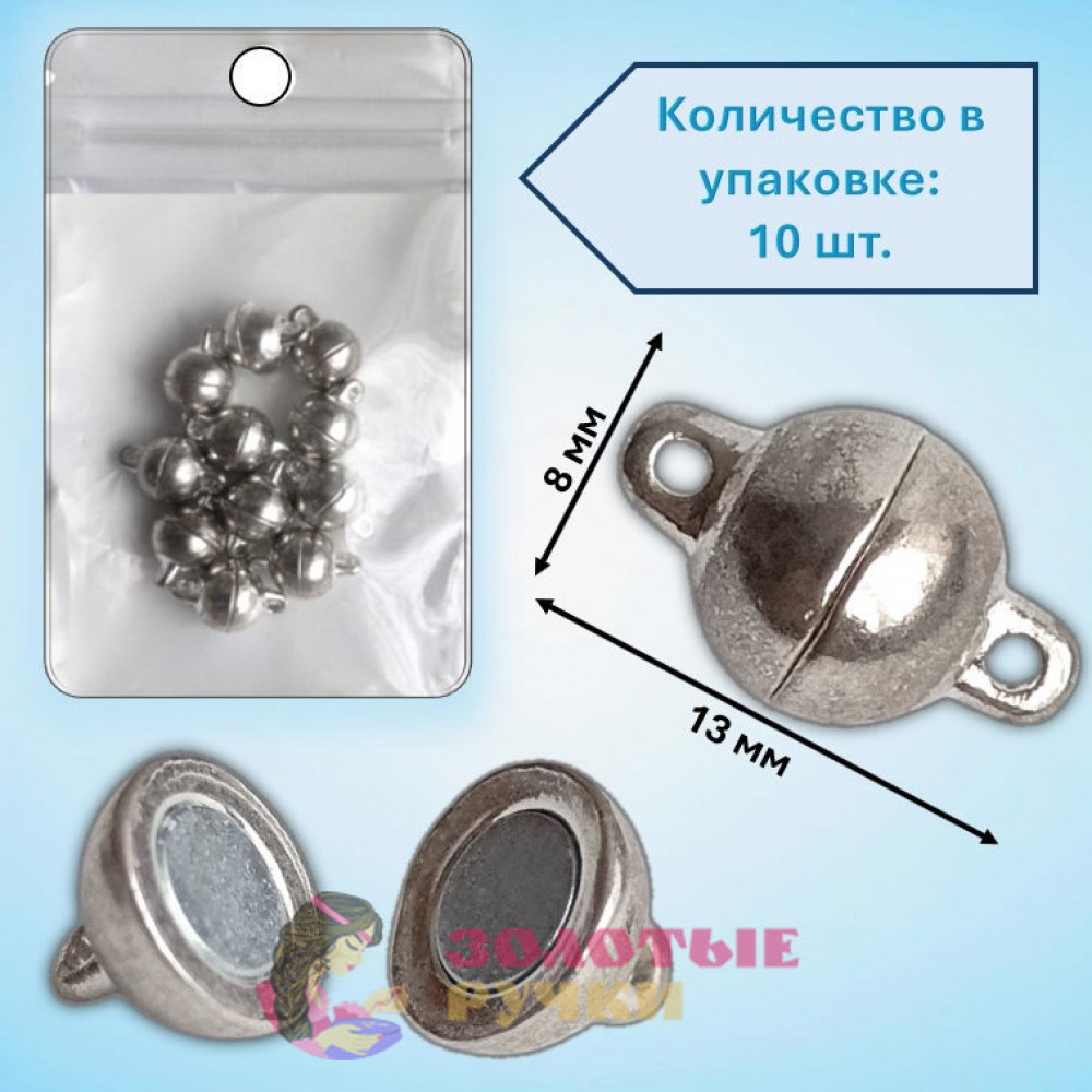 Замочки магнитные-шарики для бижутерии. Количество в упаковке 10 шт. Цвет: серебро