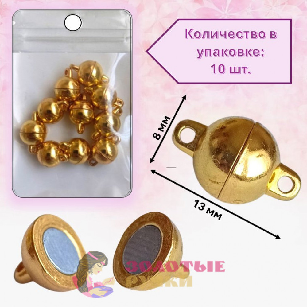 Замочки магнитные-шарики для бижутерии. Количество в упаковке 10 шт. Цвет: золото