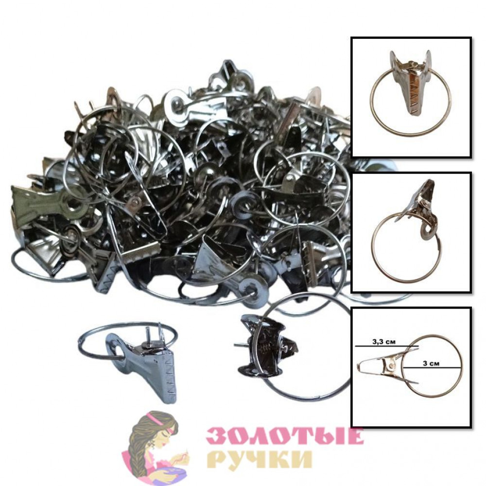 Зажимы для штор с кольцом металлические. Цвет: серебро. Количество в упаковке: 100 шт.