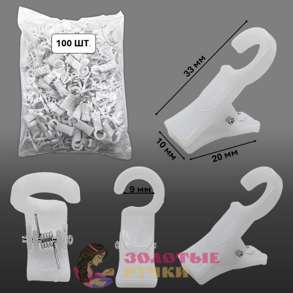 Зажимы для штор пластиковые. Цвет: белый. Количество в упаковке: 100 шт.